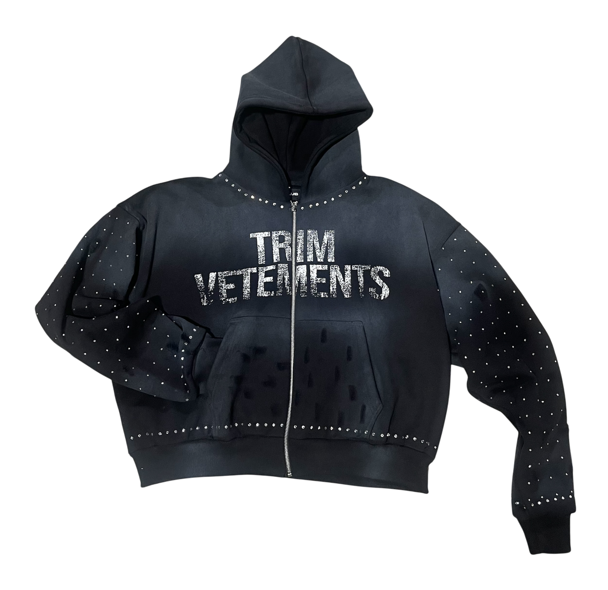 “TRIM VETEMENTS” RHINESTONE ZIP UP HOODIE